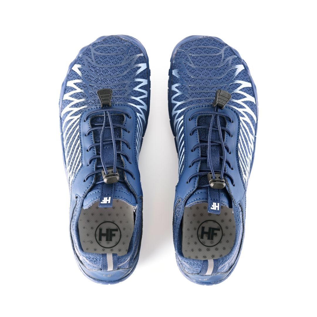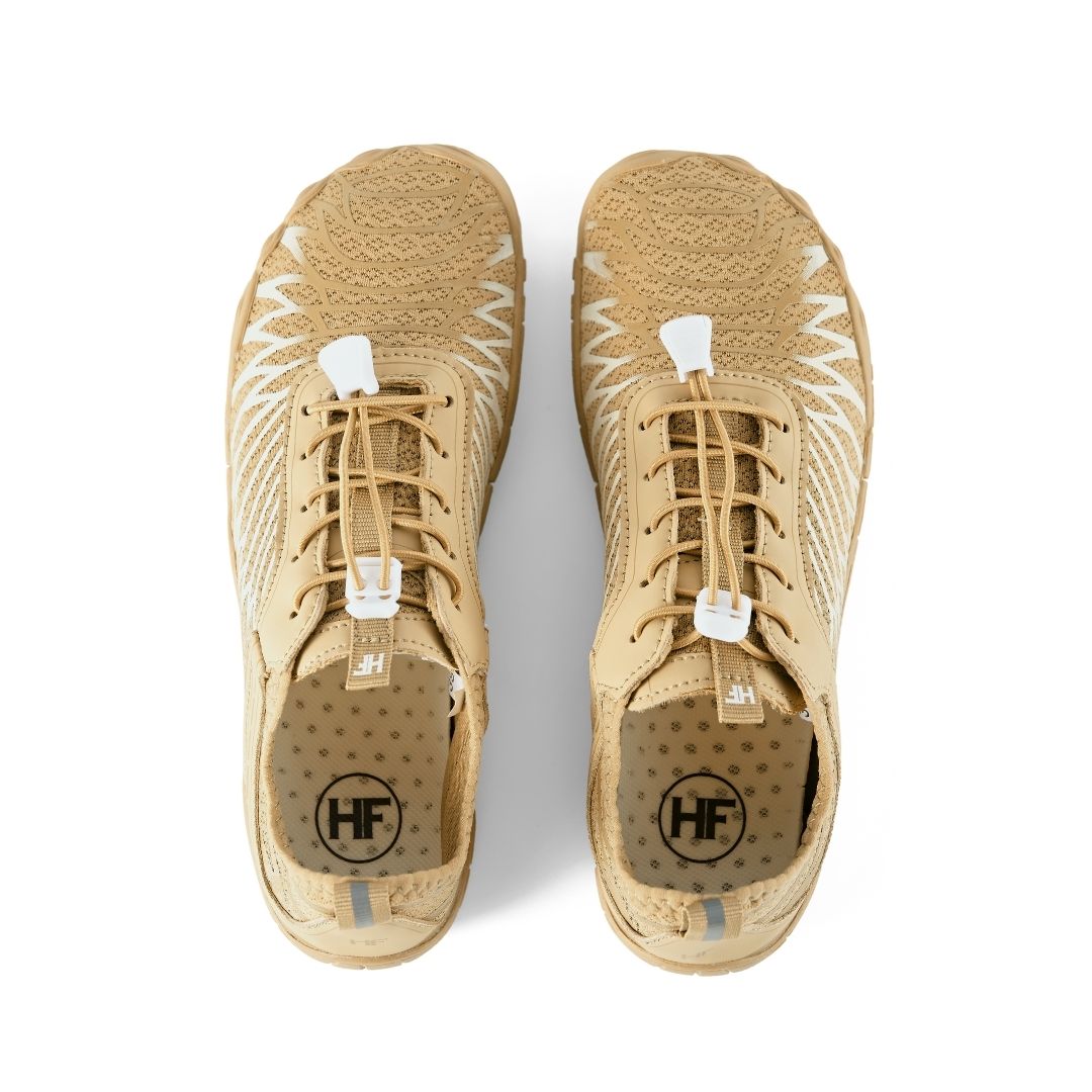 Conçues selon les principes du barefoot, ces chaussures intègrent un système d’enfilage mains libres qui permet de les chausser sans effort, tout en conservant les bénéfices ergonomiques du mouvement pieds nus.