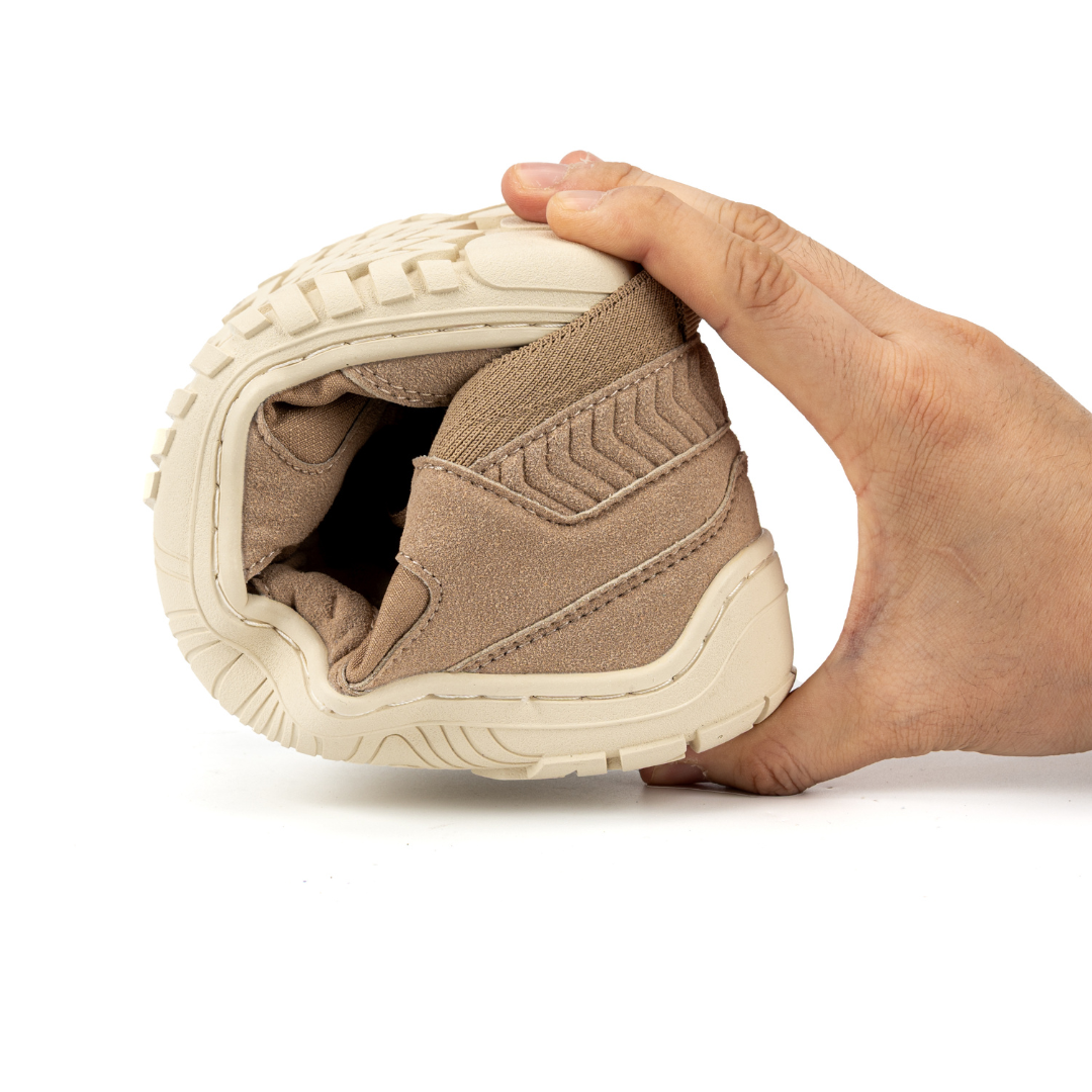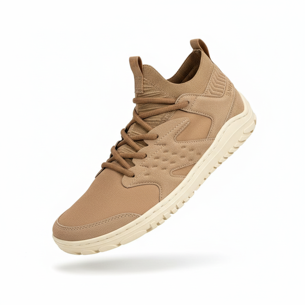La semelle zéro drop favorise une posture plus saine en alignant naturellement le corps depuis le sol, réduisant la pression exercée sur les chevilles, les genoux et le bas du dos. La boîte à orteils large permet aux orteils de s’écarter librement, améliorant le confort, la stabilité et l’équilibre.